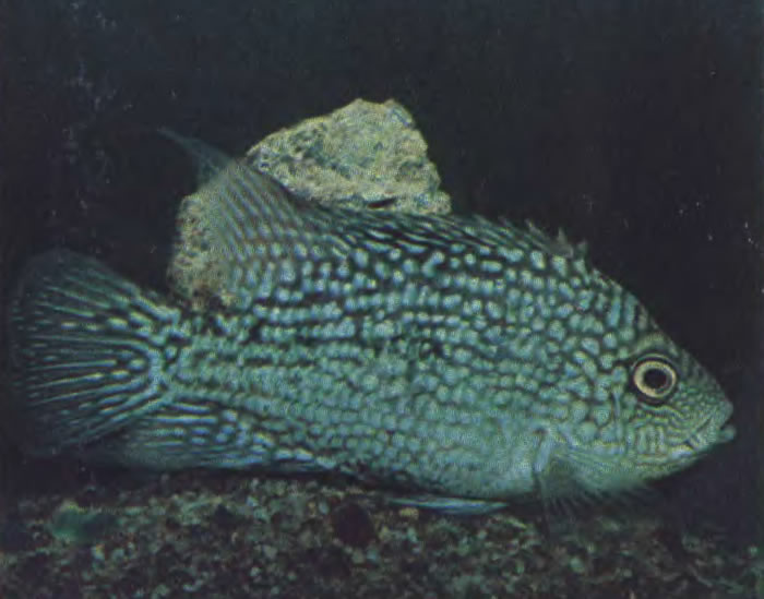 Родина — водоемы севера Мексики и южных штатов США. В природе достигает 30 см длины. Тело высокое, сплющенное с боков. Исключительно нарядно окрашенная рыба — на коричневато-зеленом теле мерцают блестящие золотисто бирюзовые точки и штрихи. Самки мельче и окрашены несколько скромнее. Рыбы любят старую, насыщенную кислородом аквариумную воду. В нерестовый период очень активны, перекапывают грунт, устраивая место для икрометания. Икру откладывают на предварительно очищенный камень. После выклева личинок при температуре 27—28°C родители переносят их в подготовленную яму в песке. Поплывших мальков следует кормить живой «пылью» и другими микроорганизмами.