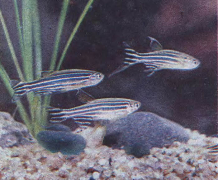 Среди начинающих аквариумистов очень популярны брахиданио рерио, розовый, чернополосый, леопардовый. Они сравнительно невелики — 4—5 см в длину, неприхотливы, миролюбивы.