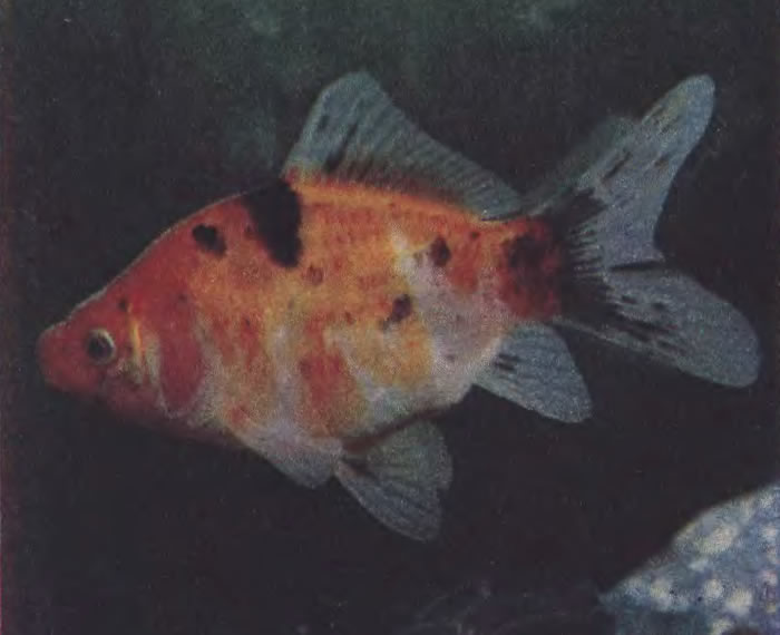 Шубункин. Обычная по форме золотая рыбка. Особенность — пестрая окраска с мозаичным рисунком и почти прозрачная чешуя. Ценятся экземпляры с синефиолетовыми пятнами.