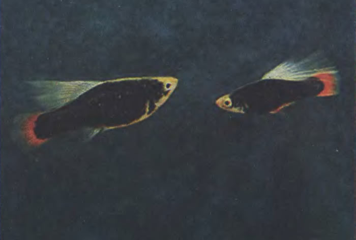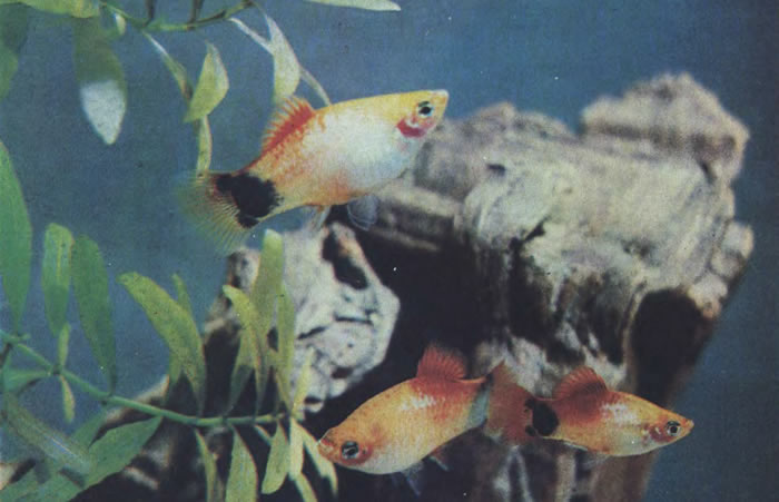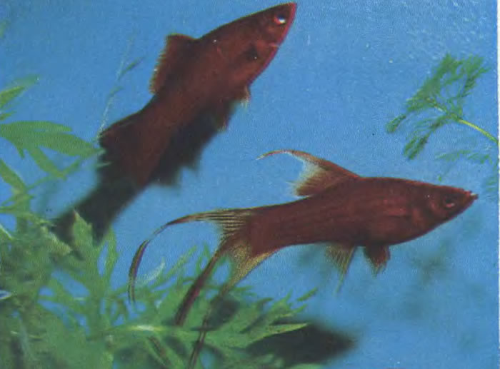 Особенно красивы платипецилии с фарфорово-белой каймой на плавниках. Платипецилии отличаются и строением плавников: имеются обычные рыбки с круглыми плавниками, парусные и шарфовые, «редиска» — с выступом посередине хвоста. Рыбки очень выносливы и неприхотливы. Условия содержания и размножения — как и для всего рода.
