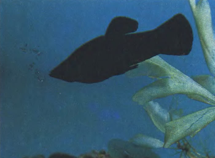 Родина — водоемы южных штатов США, Мексики и Колумбии. Пестрая исходная форма послужила селекционным материалом для выведения исключительно популярной черной моллинезии с различной формой спинного и хвостового плавников. Теплолюбивые рыбки, хорошо растут и размножаются в просторных аквариумах с водой средней и более высокой жесткости, слегка подсоленной (1 чайная ложка на 10 л), при температуре не ниже 24°C. Обязательны аэрация и фильтрование воды, регулярная ее подмена. Обильное кормление разнообразным живым кормом с добавлением растительной пищи — непременное условие хорошей плодовитости рыб. Самки вынашивают мальков в течение 40— 45 дней, в помете бывает до 150 мальков, способных сразу же питаться мелким циклопом и другим кормом. Хорошо очищают аквариумные растения от обрастаний.